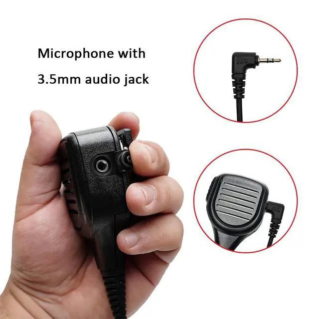 Wide CompatibilityCompatible with Vertex Standard radios including VX-261, VX-180, VX-210, VX-410, EVX-531, Also compatible with Yaesu VX-230, VX-231, VX-351 2-way walkie-talkies ^^ 3.5 mm Audio Jack Rugged Detachable (Replaceable) Swivel Clip & 3.5 mm Audio Jack, The 3.5 mm jack of this mic, it just support listen only earpiece ^^ IP54 Water-Resistant & Rugged Build Features a durable, weather-resistant design (IP54 rated) with a Kevlar-reinforced PU cable and anti-interference circuit, perfect for outdoor, industrial, and harsh environments ^^ Convenient Push-to-Talk & Secure Clip Easy-to-use PTT button and a rugged, detachable swivel clip for secure attachment to belts, straps, or pockets.