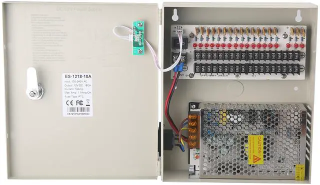 Net Weight 2.3K gSpecification: Input Voltage AC 100-240VInput Voltage Frequency 50/60HzOutput Voltage DC 12V +/-5%Total Output Current 20ATotal Outputs 18Fuse Type PTC (Resetable) Fuse Rating 1.1A