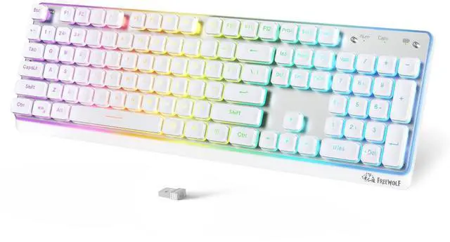 ^^ RGB Backlit Keyboard with 15 Lighting Effects This RGB keyboard features 15 customizable backlight modes and 16 million colors, easily adjustable with Fn + Ins. The vibrant backlit keyboard creates a stylish desk setup and enhances visibility in low-light environments, making it perfect for work, study, or entertainment. ^^ Premium Aluminum Alloy Keyboard for Long-Term Durability Built with a high-quality aluminum alloy top cover, this durable wireless office keyboard resists wear, discoloration, and greasy buildup. The anodized surface ensures a premium texture and long-lasting appearance, outperforming standard plastic keyboards.