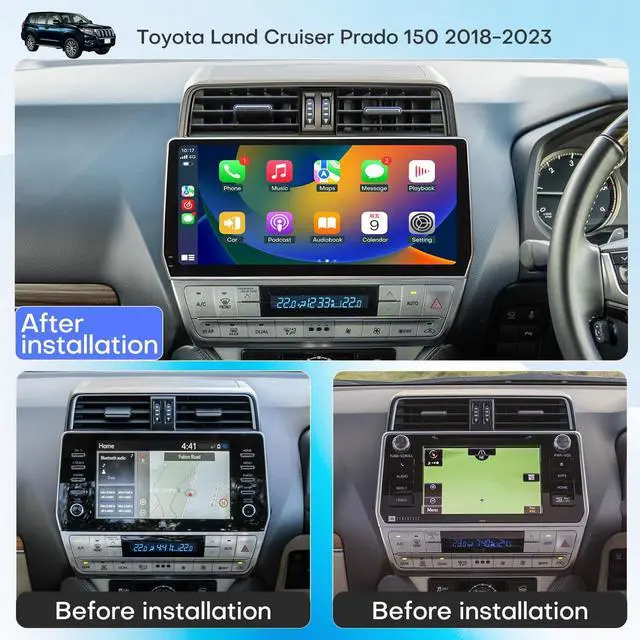 Vehicle CompatibilityThis car stereo radio is specifically designed to fit Toyota Land Cruiser Prado 150 2018 2019 2020 2021 2022 2023. It can be directly connected to the original car wires for operation. Easy to install, plug and play. Android 13 8 Core CPU, 4GB Ram & 64GB Rom with 12.3 inch 1920*720 High Resolution Touch Screen built-in RDS.