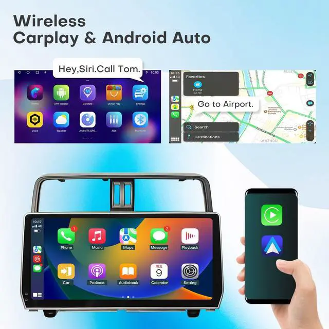 Note: If the radio fails to work after installation, please contact us immediately for a free replacement wiring harness kit. ^^ CarPlay & Android AutoThe update Toyota Land Cruiser Prado 150 car stereo radio supports both CarPlay and Android Auto, offering wired and wireless connectivity. With voice control technology, simply connect your smartphone to access map navigation, contacts, emails, notifications, music, and more via Siri or Google Assistant. you can achieve completely hands-free operationand focus on the road, ensuring driving safety while significantly improving convenience. ^^ Wifi & 4G & BluetoothSupports Bluetooth, hands-free calling. Support wifi and 4G modules, you can enjoy online navigation, real-time traffic updates, and smooth online video playback. Additionally, you can download popular apps such as YouTube, Netflix, and Facebook from the app store. enhanceing your driving and travel experience, making it more enjoyable and safety. In addition, we have passed the US Federal Communications Commission FCC certification. ^^ Precise GPS NavigationEquipped with GPS functionality, it offers both online and offline map navigation, real-time traffic updates, and optimal route optimization and turning direction help you avoid congestion and effectively reach your destination.