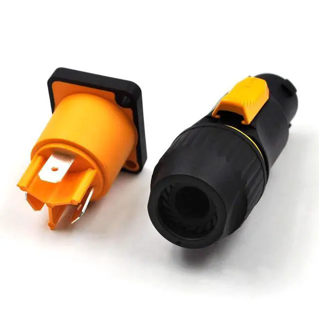 Discover superior power connectivity with this professional-grade PowerCon locking connector. Built to withstand challenging outdoor conditions, this 20-amp rated chassis connector features IP65 protection, ensuring reliable performance in wet and dusty environments. The secure locking mechanism prevents accidental disconnections, making it ideal for outdoor events, installations, and professional applications where dependable power distribution is crucial. The rugged construction and weatherproof design make this connector a perfect choice for outdoor lighting systems, sound equipment, and other professional gear that requires consistent power delivery in all weather conditions. The chassis-mount design allows for easy integration into equipment panels and enclosures, while maintaining the waterproof seal.