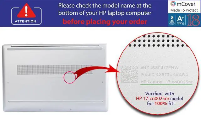 NOTE: Before placing order, PLEASE make sure to verify your laptop model number as this case is MODEL specific and NOT interchangeable. ^^ NOT fitting other HP 17-inch laptops. NOT compatible with ANY other HP laptops as well. ^^ Made of high-quality translucent polycarbonate material which is shatter-proof and will protect your 2021-2023 17" HP Laptop 17-CNxxxx series (No DVD drive ) Windows Laptop Computer all around ^^ Designed to perfectly fit the 2021-2023 17" HP Laptop 17-CNxxxx series (No DVD drive ) Windows Laptop Computer with dimension of 15.78 x 10.15 x 0.78 inch ( 400.7 x 257.9 x 19.9 mm ) ^^ 2-piece light-weight ( 14.3 oz or 405 g ) shell easily snaps on and off.