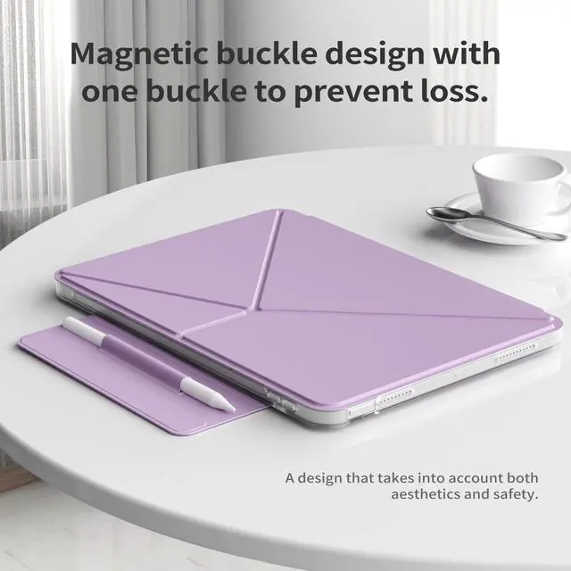 Magnetic Design & Detachable Clasp: The case with built-in magnets can stabilize the body, and the included detachable magnetic clasp can also protect the pencil. The transparent frame is thoughtfully designed with a groove to support the pencil to attach and charge. It should be particularly noted that this case fully supports pencil Pro and pencil 2nd Generation wireless charging as well as Pencil USB-C magnetic attachment. When using the pencil, the clasp can also be removed to serve as a pencil holder to prevent it from falling off or getting lost.