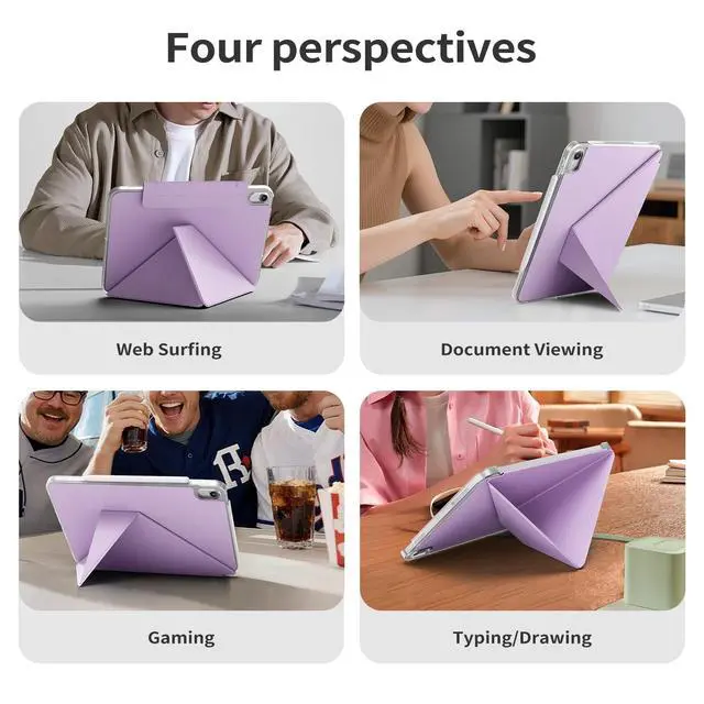 ^^ Multiple folding angles: The multi-angle folding stand design of this case offers multiple viewing angles, allowing you to seamlessly switch between viewing, typing and drawing angles. It is very suitable for work, video calls or online viewing. The multi-folding triangular structure ensures a stable standing position, allowing for stable standing even on soft surfaces such as beds. ^^