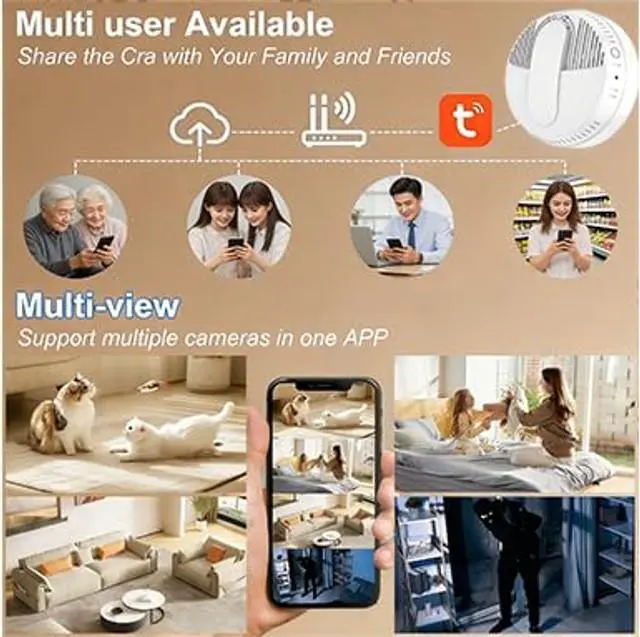 Remote Access: Comes with full accessories (camera, remote control, manual, 10000mAh power, USB cable) for easy installation, supports stable 2.4G WiFi and APP remote access, enables 24/7 monitoring (no smoke detection function) to check home dynamics in real time anytime, anywhere on work or trips. ^^ Family Protection & Reliable