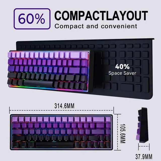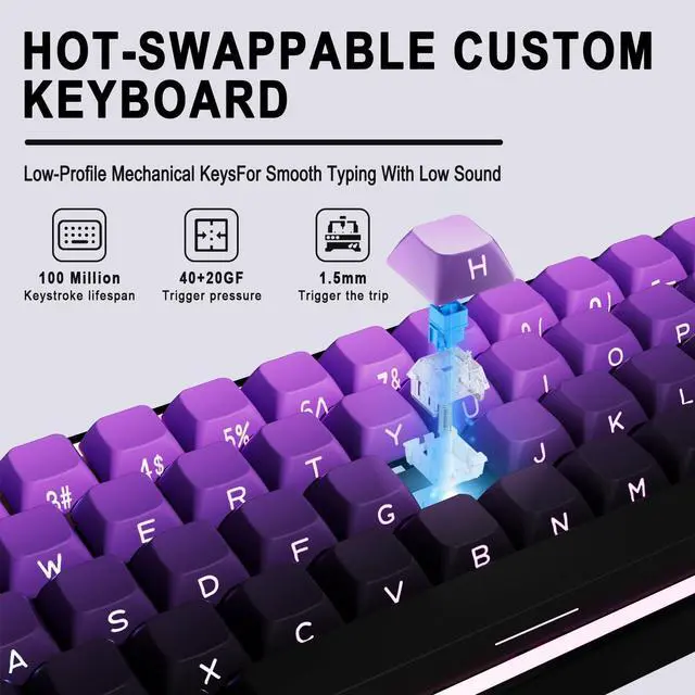Gradient Design: Wired gaming keyboard Wired outfitted with premium PBT keycaps mechanical keyboard, resistant to shine and wear, paired with a stylish purple gradient colorway that adds personality while ensuring long-lasting legends and comfortable typing. ^^ Wired keyboard mechanical with