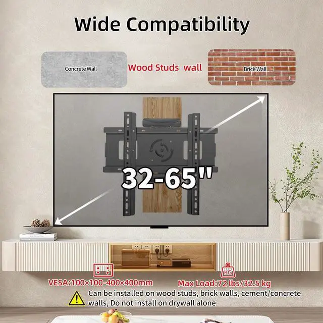 note: Can be installed on wood studs, brick walls, cement walls, Do not install on drywall alone ^^ If you encounter pre-purchase and installation questions about tv mounts, please consult us to help you solve themIn addition, we provide 10 years of after-sales service to ensure that you are worry-free after sale, please rest assured to use