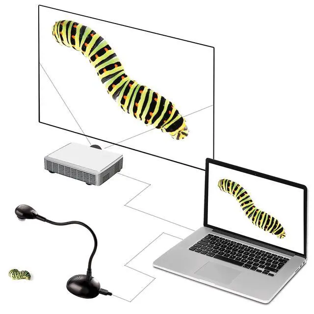 VIDEO CONFERENCING CAMERA for office and home use which can also be used as a webcam for live streaming, gaming, working from home, remote monitoring and sketchnoting. Plug & Play, no CD or drivers required. ^^ DOCUMENT CAMERA with a built-in microphone and flexible gooseneck.
