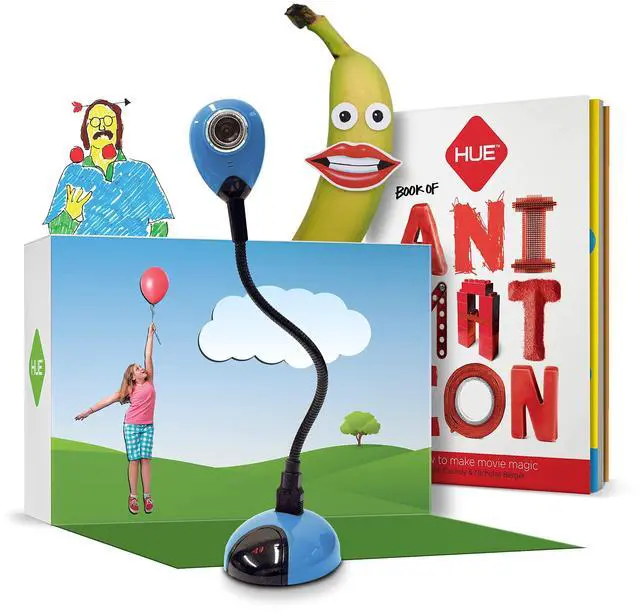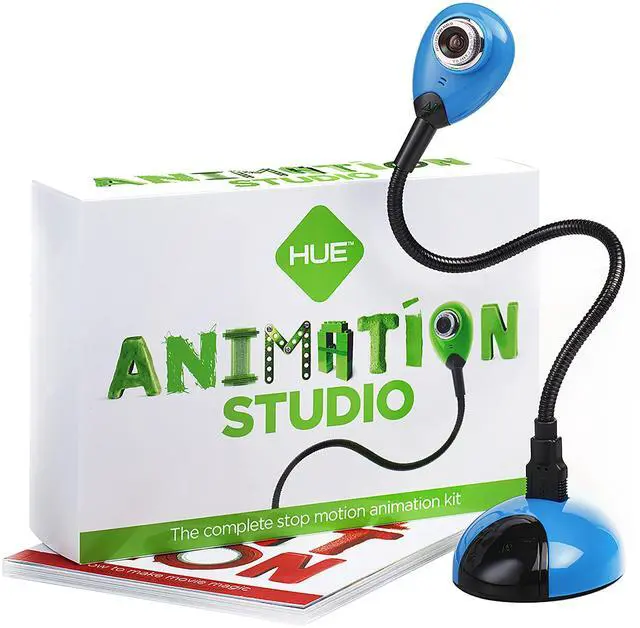 COMPLETE STOP MOTION ANIMATION KIT including the HUE HD USB camera with integrated microphone, easy-to-use stop motion software (Windows and macOS), a 64-page full-color book of animation, a mini stage with background, printable activities and sound effects. ^^ RECOMMENDED BY TEACHERS, perfect for balanced play, a creative, educational, gender-neutral activity for kids. Used worldwide for homeschooling, after-school clubs, makerspaces and classroom activities. ^^ Free your imagination by animating brickfilms, modeling clay, paper, or toys. Recreate scenes from movies in minutes. ^^ STEM.