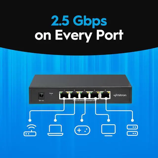 ^^ PLUG-and-PLAY SIMPLICITY - No configuration required. Connect your router and devices and the 2.5 gb switch automatically manages traffic for optimal performance. ^^ WORKS WITH ALL ETHERNET DEVICES, OLD AND NEW - Smart auto-negotiation supports 2.5G, 1G, and 100M devices. Perfect for laptops, gaming consoles, smart TVs, WiFi access points, and NAS systems ^^ IDEAL FOR HOME OFFICES, GAMERS & SMALL SPACES - Boost wired reliability for work-from-home setups, streaming devices, consoles, smart TVs, and more, all from one compact, 2.5 gb switch.