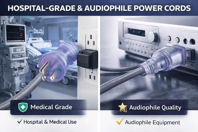 The RiteAV Hospital Grade Heavy-Duty Power Cord is built for secure and reliable power delivery in medical and professional environments. Featuring a hospital-grade NEMA 5-15P plug and a C13 connector, this cable ensures a strong and stable connection for critical equipment. Constructed with durable 14AWG wiring, it supports up to 15A at 125V, making it ideal for hospitals, clinics, laboratories, and other demanding settings. Designed for durability and compliance with hospital-grade safety standards, this power cord provides dependable performance where reliability is essential.