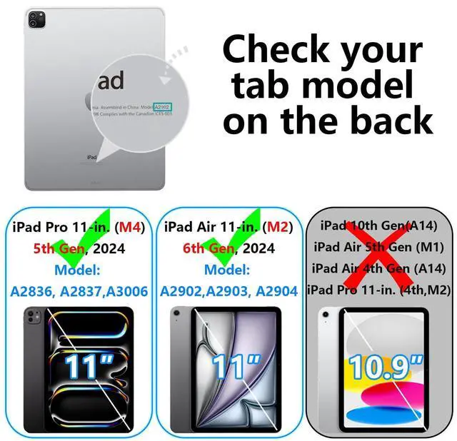 Fit: Case for iPad Air 11 inch Case 2024 (M2)/iPad Air 6th Gen Case 2024/iPad Pro 11 Inch 5th Gen Case 2024 (M4)