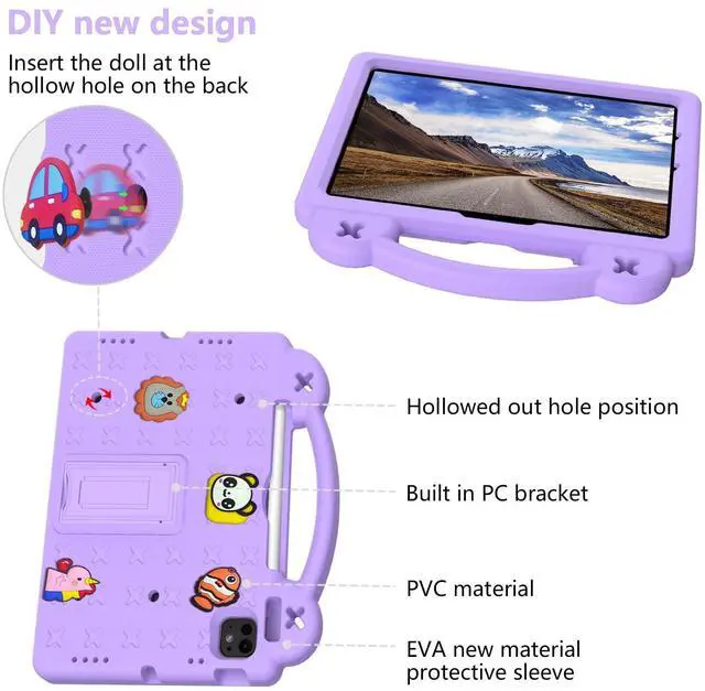 Kids-Size Handle & Kickstand: Case for ipad air 11 tablet is with friendly kids-size handle, easy for kids to hold in a small hand and to carry around. Also bulid-in adjustable stand on the back, available to put the ipad pad in viewing or typing angle according to need, free your hands. It is a lovely design case for kids and elderly