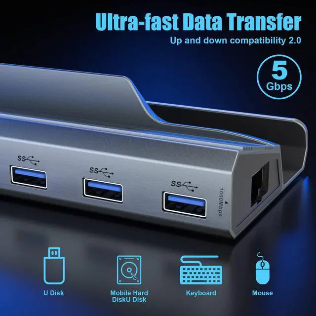 6 in 1 Docking Station for Steam Deck: This steam deck dock is a docking station with HDMI 2.0 4K@60Hz port for connecting high resolution TV, monitor, Gigabit Ethernet input port,USB-A 3.0 X3 5Gbps/s Data transmission is backward compatible with USB 2.0,PD 100W full-speed charging,Also comes with Steam Deck Touchpad Protector,non-slip and Protect your Steam Decks' Trackpads.