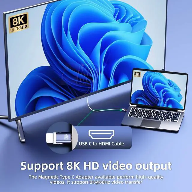 40Gbps Data and 8K@60Hz Video: Magnetic usb c adapter straight meets power specs and data transfer rates of USB 4, and supports 40Gbps data transmission speed. With USB4 cable, the usb type C magnetic adapter support 8K@60Hz HD video & audio output. Not only can it be used with docking station /hub, but also it has excellent performance with Quest VR.