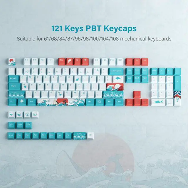 [(Widely Compatible)] This upgraded coral sea keycap set contains 121 keys. It can fit most 60%/65%/75%/80%/96%/100% (61/64/68/84/75/87/96/980/104/108) keyboards .