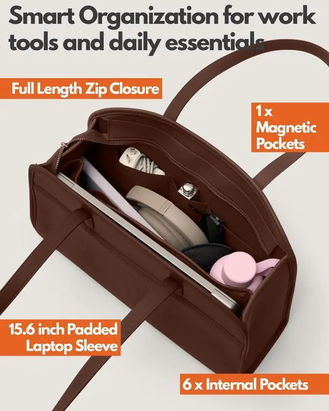 Stylish & Functional - An over-the-shoulder tote work bag for women who do not want to compromise between function and style. This structured computer purse is perfect for work, business trips, meetings, college, and more.