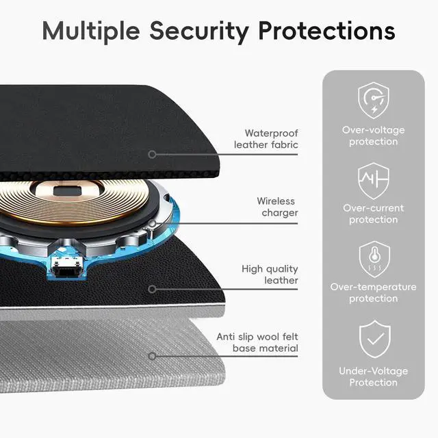 Desk Mat with Wireless Charger, PU Leather Fast Charging Gaming Mouse Pad, Waterproof Anti-Slip Surface, Easy Clean Office Table Mat, 36L x 17W x 0.15H inches, Black(Left Side Charging Port)