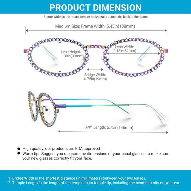 Elegant rhinestone frames and classic color design, with the amount of chic everyday collocation just right, unique yet personality, suit for office, relaxing, and any occasion