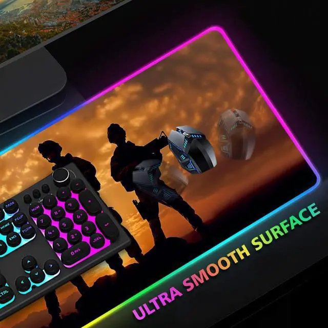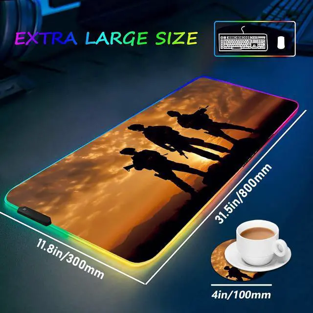 This great desk pad will perfectly fit your gaming set up, maximize your control and speed, make your PC gaming experience most enjoyable, Perfect for Esports and office. This large mouse pad will surprise you in a good way through the following features. Features? The roomy 800mm * 300mm * 3mm surface area gives you the space you need. You can put your keyboard, mouse, phone, earphones on this extended mouse pad.? 12 lightning modes, This gaming mat will add brilliant colors to your battlestation with accent lightning.