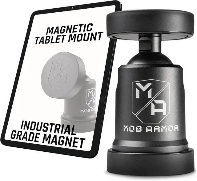 Superior Magnetic Tablet Mount: Elevate your tablet mounting experience with the TabNetic Maxx by Mob Armor. This upgraded version boasts two robust 290lb pull-force magnets, encased in a durable billet aluminum housing. With 180 degrees of tilt and a full 360 degrees of rotation.