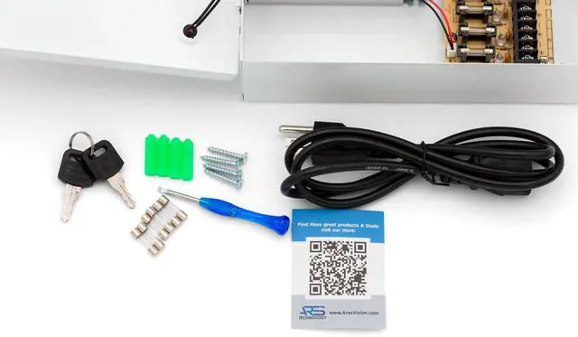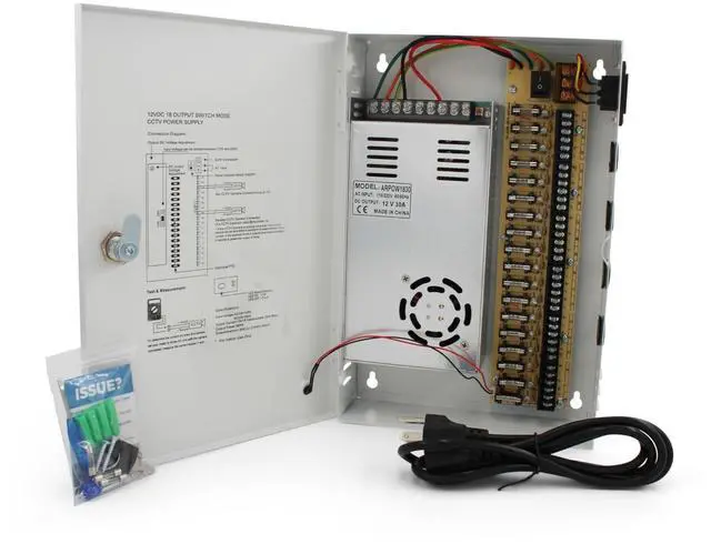 ^^ PACKAGE INCLUDES: One 18CH 12V DC Power box, Key Lock, Rubber Seal, Power cord & Installation Accessories