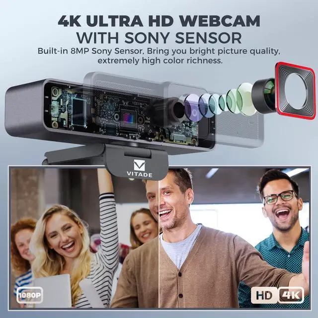 (Note: Please ensure that you have disabled the auto framing function before using the zoom function. ) ^^ Dual Mics and Canceling MicrophonesWith AI Noise-Canceling technology to remove ambient sounds that would interfere with communication, the one talking could be heard loud and clear within the distance of up to 5 meters. Perfect for Zoom, Skype, Facetime, Facebook, YouTube, Microsoft Teams, and any other popular video calling software. ^^ 4K Conference Web Camera With HDR Technology HDR improves the details of light and dark colors and contrast of the video image, and thus makes the image more realistic. This increases the dynamic range of the video while correcting over and underexposed areas. ^^ Plug and Play Setup & Widely Compatibility The 4k webcam works with USB A or USB C with included Adapter. Plug and play, No additional driver required. You can directly enjoy the webcam in applications such as Skype and Zoom. Compatible with Windows XP/7/8/10/11, Mac OS 10.6, Linux 2.6. 24, Chrome OS 29.0. 1547 or above, Ubuntu Version 10.04 or above.