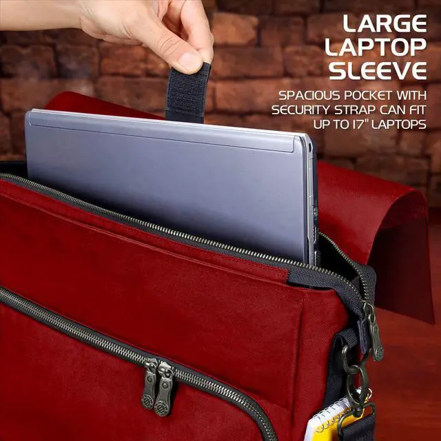 ENHANCE Collector's Edition RPG Player's Essentials DnD Bag - Dragon Hide Exterior Messenger Bag Fits 2-4 Books, Binders, Dice & Accessories, with 17 inch Laptop Slot, Battlemap Straps (Dragon Red)