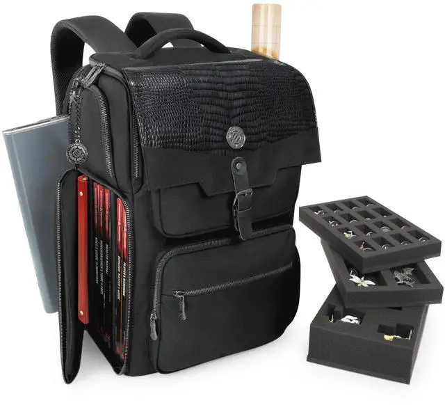 • GAME MASTER's CAMPAIGN BACKPACK A D&D equipment chest with comfy straps designed to carry an adventurer's hoard of supplies: 6-8 RPG books, up to 18" laptop, 1-2 binders, DM screen, 25+ minis, more