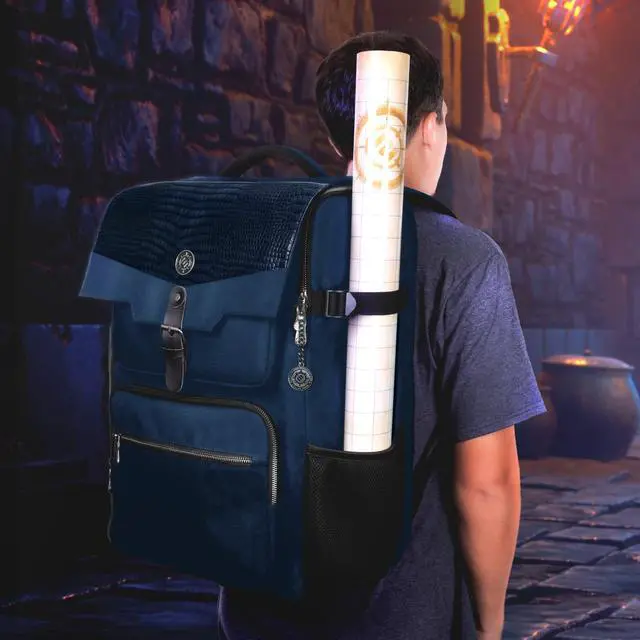 ENHANCE Collector's Edition DnD Backpack - RPG DM Bag for Dungeons and Dragons - DnD Bag fits 6-8 Books, 18" Laptop/DM Screen Slot, Miniature Foam Trays, Accessory Pockets, Map Strap (Dragon Blue)