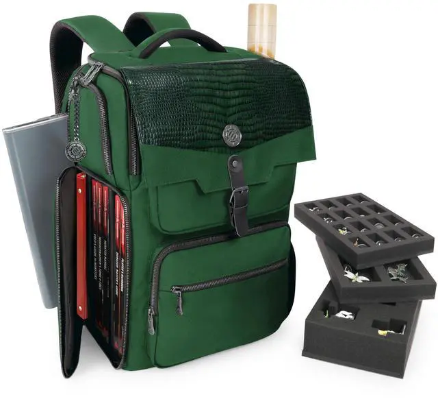 ENHANCE Collector's Edition DnD Backpack - RPG DM Bag for Dungeons and Dragons - DnD Bag fits 6-8 Books, 18" Laptop/DM Screen Slot, Miniature Foam Trays, Accessory Pockets, Map Strap (Dragon Green)