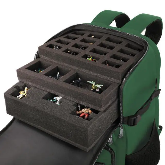 • MINIS BARRACKS House your collection of PCs, NPCs, monsters across 3 integrated miniatures foam trays: 16-slot tray for 28mm figures, 8-slot tray for medium figures, and a customizable foam tray