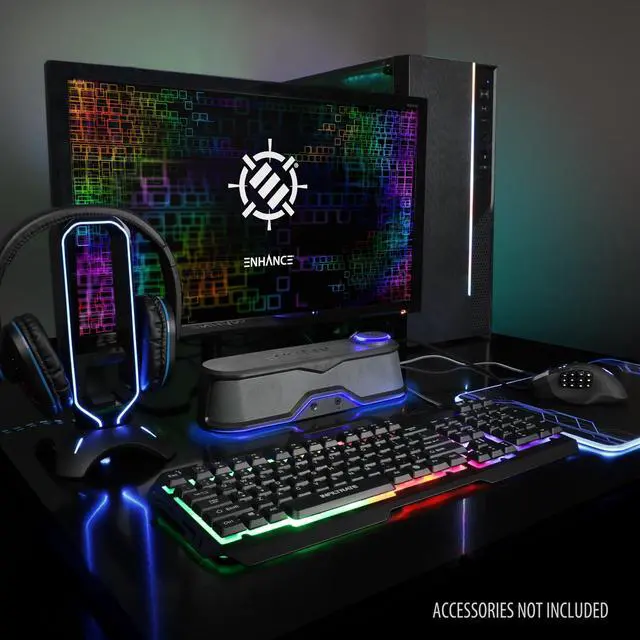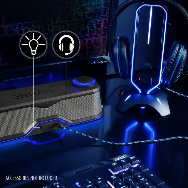 ENHANCE SB1 Computer Speakers High Excursion Soundbar - USB Powered Computer Sound Bar, Under Monitor Speaker with 10W Peak, LED Volume Control Knob, Headset Pass Through, Gaming Soundbar for PC