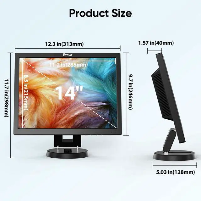 VGA Monitor: This Small LCD monitor has a 1024*768 resolution, and provides excellent color details. 14 inch ultra-thin bezel design and 4:3 aspect ratio make the vision wider ^^