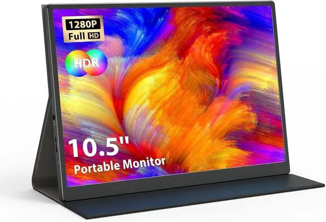Note: 1. This monitor does not support touch functionality. 2. For iPhones (before Generation 15), a Type-C to Lightning adapter is required for connection. ^^ Wide CompatibilityThis 1280P compact monitor is equipped with dual USB-C ports and a Mini-HDMI port, making it compatible with most laptops, smartphones, PCs, and gaming consoles. The built-in dual speakers deliver an immersive audio experience. Its an ideal portable display for screen extension, gaming, video playback, and home entertainment. ^^ Lightweight and Easy to CarryAt just 0.31 inches thick and weighing only 0.8 lb, the Eyoyo 10.5" portable monitor is designed for life on the go. It includes a smart cover for full protection, making it a great companion for travel, work, gaming, and more.