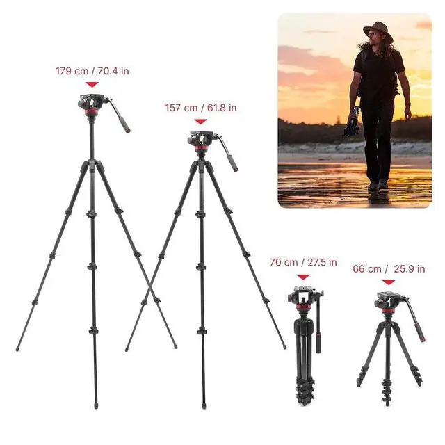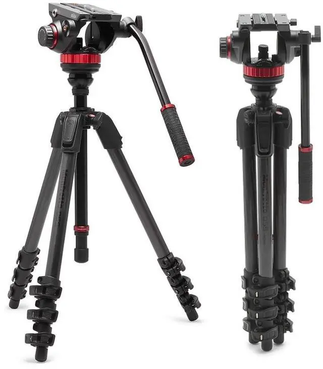 Manfrotto 055 Video Tripod w/502 Video Fluid Head, Carbon Fibre, Professional Heavy Duty System, with Levelling Column, Lever Lock, Camera Tripod Stand, for DSLR/Mirrorless Cameras, Camcorders