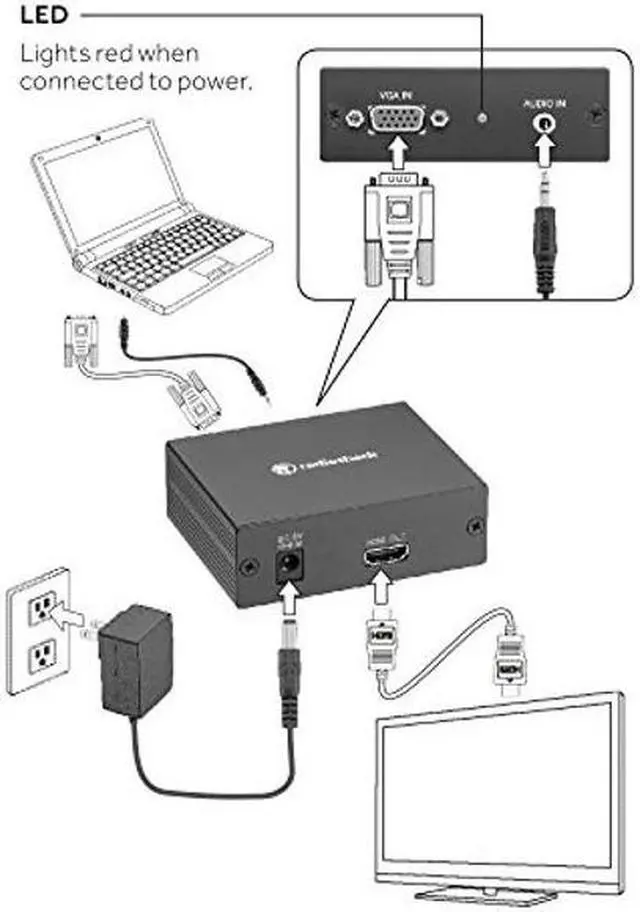 Need to show that presentation on the big screen TV with HDMI inputs? This converter will allow an older VGA enabled computer to connect to new modern displays, TV's & projectors with audio pass-through.