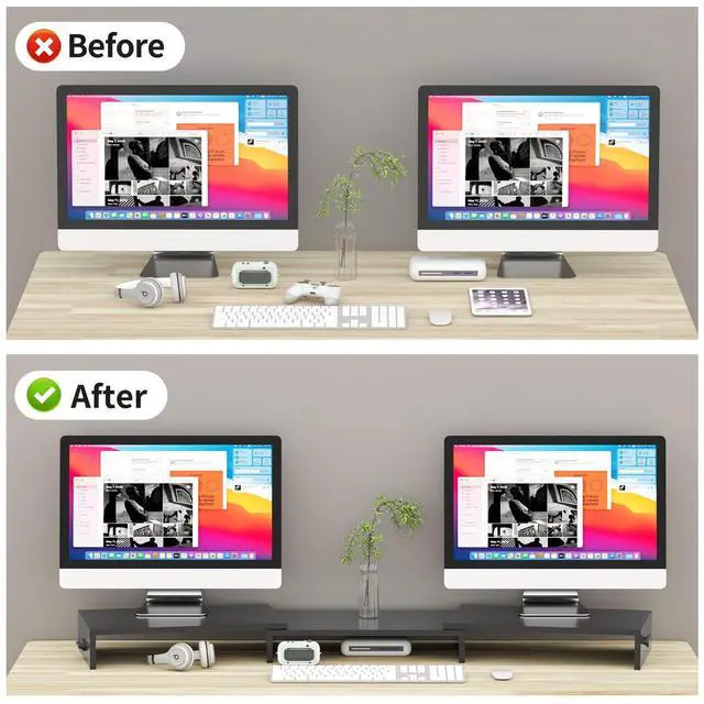 SPACIOUS STORAGE UNDERNEATH - It elevates the monitors to comfortable viewing height up to 104mm, creates an additional large storage, allowing you to put your keyboard, mouse, DVD players, cell phones, iPa