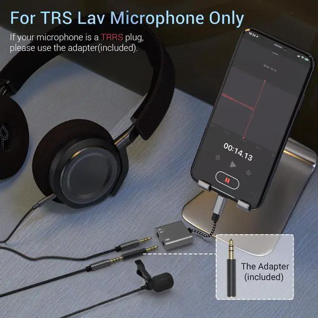 [ONLY for Lavalier MIC] Please note that the adapter is design for lavalier microphone ONLY, NOT for line-level audio input, NOT for condenser MIC, dynamic MIC, XLR MIC or any MIC that requires phantom power supply.