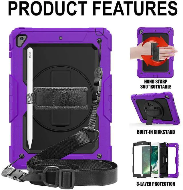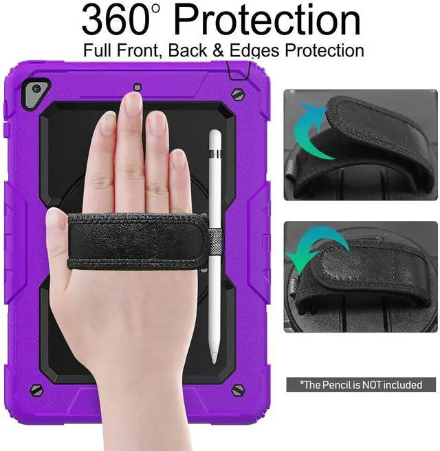 [360°Rotatable Kickstand & Hand Strap] 360°Rotatable Kickstand offers multi-angle stands for enjoying the most comfortable typing and viewing angles. The 360°Rotatable and Adjustable Hand Strap makes you hold or use your device easier in all directions. Also designed with a Pen Holder to grab your Apple Pen whenever you want, easy to carry your Apple pen with your device (Apple Pencil is NOT included)