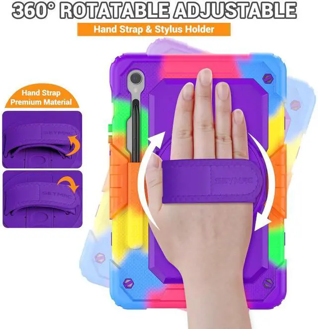 SEYMAC for Samsung Galaxy Tab S10 FE/ S9 FE/ S9 5G Case ( 10.9 ''/11''), Heavy Duty Shockproof Protective Case with Screen Protector, Rotating Stand, Hand Strap and Pen Holder, Purple
