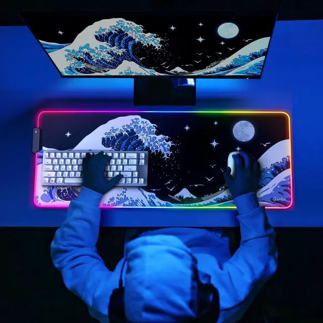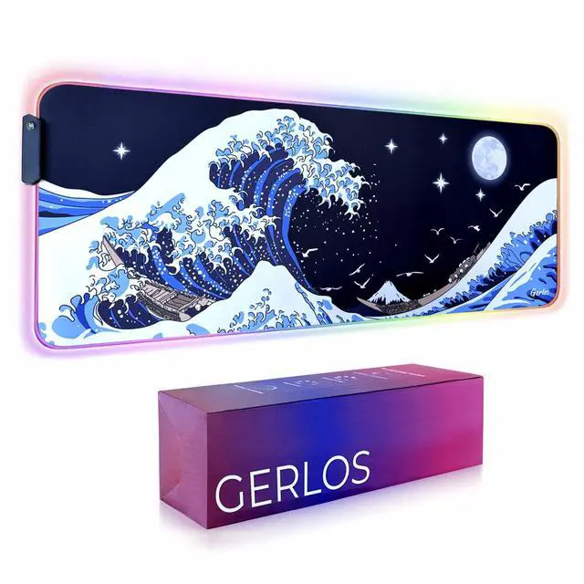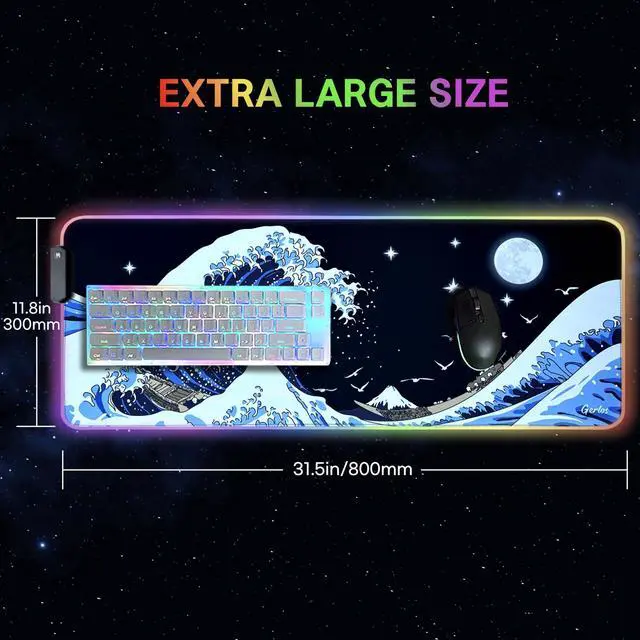 Gerlos RGB Large Gaming Mouse Pad, Extended Soft LED Mouse Pad, Non-Slip Rubber Base, Water Resist Keyboard Pad, Computer Mousepad 31.5 × 11.8 inches