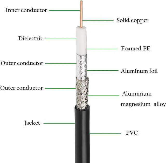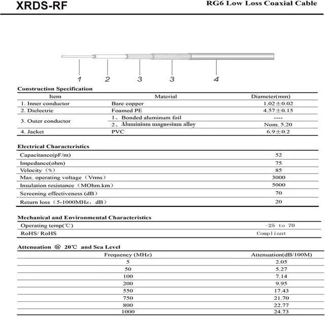 RG6 Dual Shield Cable that made of aluminium magnesium alloy and aluminum foil conductor. Our RG6 coax cables have been sweep tested up to 6GHz.75 Ohm swept tested.