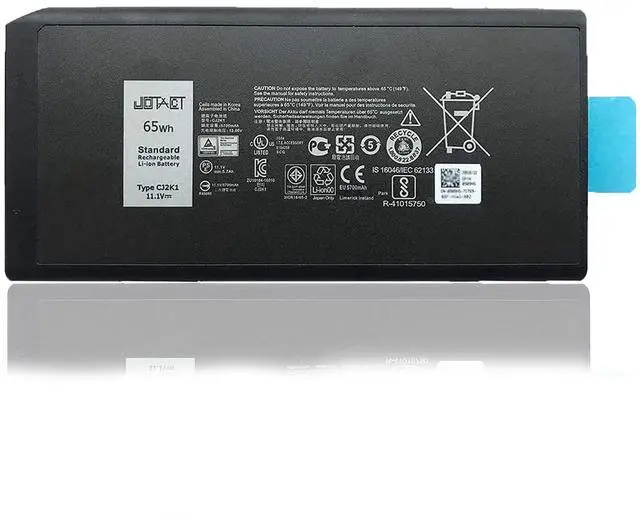 SpecificationsItem Model: CJ2K1; Product Type: Replacement battery; Battery Type: Li-ion; Number of cell: 6 cell Voltage: 11.1V; Capacity: 65Wh/5700mAh; Battery Life: Up to 500 recharge cycles over the life of the battery.