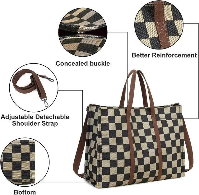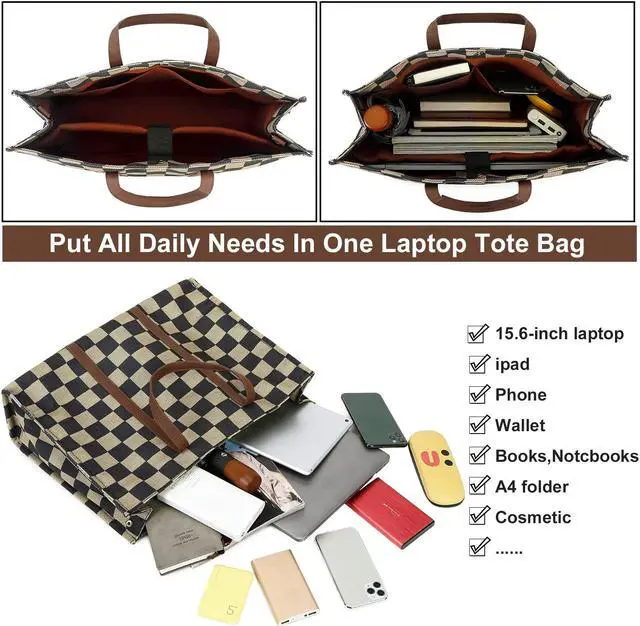 Fashion Lattice women work bag: With a simple and classic design, the tote bag for women will go with all your daily outings. Separate multiple pockets to hold all your personal stuff. 1 main roomy pocket for A4 documents, 1 computer compartment for your 15.6 inch laptop or ipad, 2 small pockets for your cell phones, or cards. Suitable as teacher bag, work totes purse, business handbag, brifecase.
