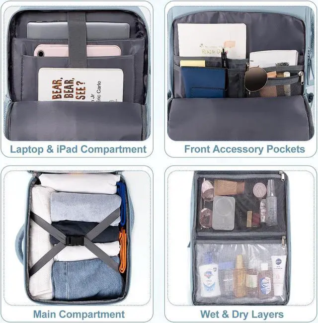 Multi-Pockets: Sinaliy carry on backpack features with padded electronic pocket fits up to 16" laptop and 12.9 ipad, a wet pocket and plenty of multifunctional pockets to organize all you daily use and travel essentials