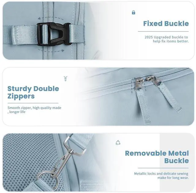 Easier Packing: Features with 180 degree opening and enough depth of the interior space, this traveling backpack enables you to pack it almost like a suitcase. And the side buckles will be helpful to compress the ba