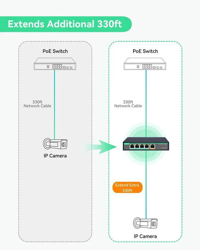 SURGE PROTECTION - 6KV surge protection, keep the PoE Extender from lightning strikes and other electrical surges, offering reliable performance even in some harsh environments.
