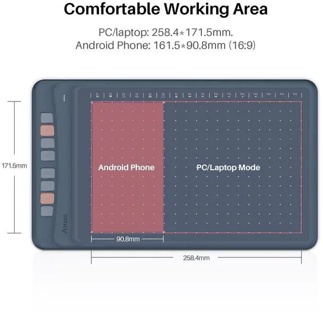 Artisul A1201 Graphics Drawing Tablet Compatible with Android Phone,10x6 Inch Digital Drawing Tablet with 8192 Level Battery-Free Stylus, Supports Tilt,8 Hot Keys, Works with Win, Mac and Android